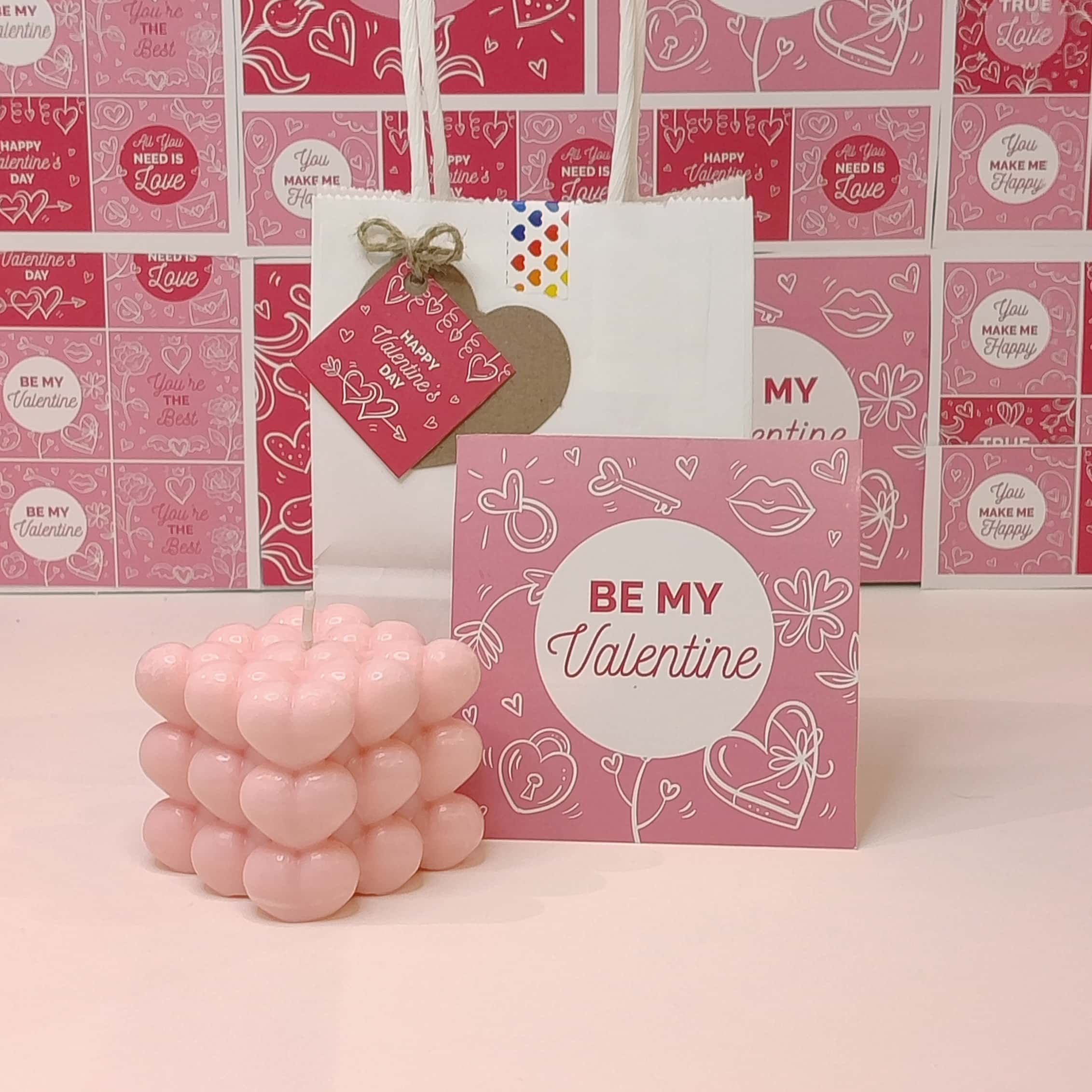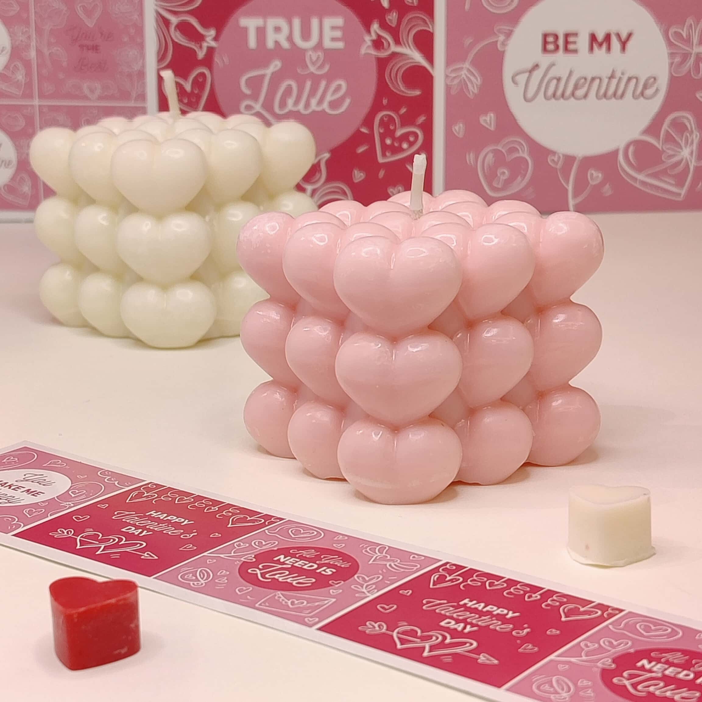Vela en forma de cubo de corazones con un aroma intenso y romántico a Berries.
